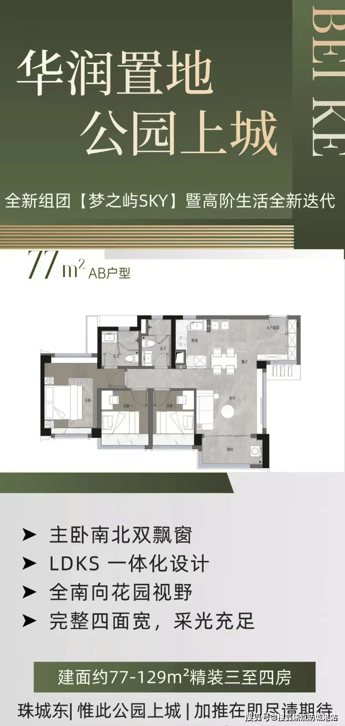 华润置地公园上城推出了使用率高达120%的新户型,提供更多的赠送面积,更大的飘窗和阳台。建面约77-129㎡的精装三至四房涵盖多种户型,部分户型主卧设有南北双飘窗、LDKS一体化设计,全南向花园视野,采光充足。不同户型各有特色,满足不同家庭的居住需求。