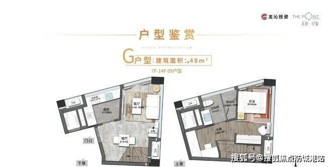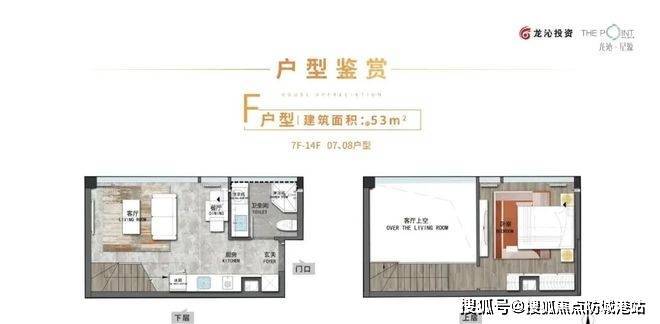 解答:约4.5米层高设计,上下分层后可实现两房格局,一层公共活动区,二层休息区,空间层次分明,使用效率高。