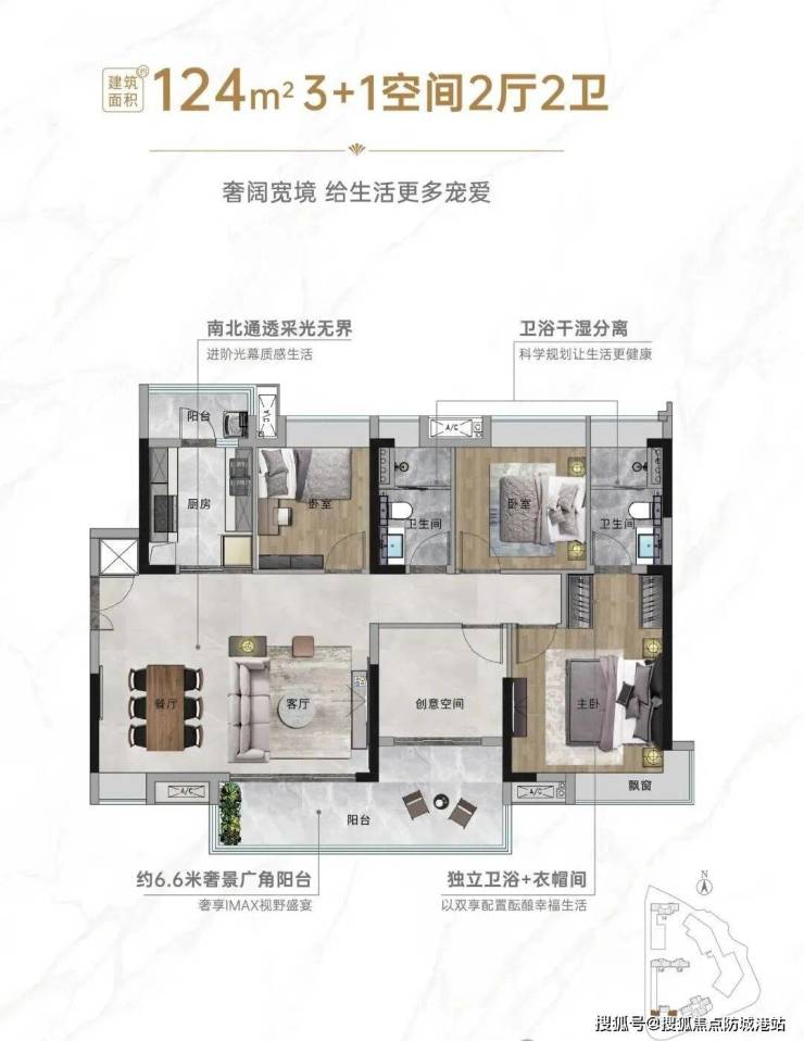 建面约124㎡ 3+1房:横厅设计,零过道浪费,特别适合二胎或三胎家庭,所有房间均配有飘窗,提升实用性。
