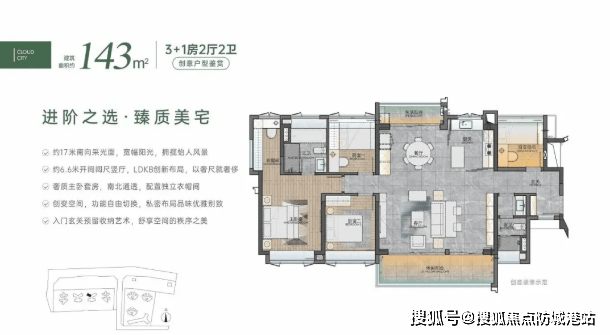 二期110–143㎡产品:采用更宽绰的格局设计,129㎡与143㎡均为四房两卫,适合追求更高生活品质的家庭。