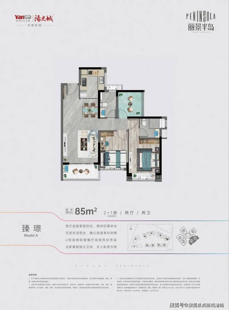 阳光城丽景半岛在售户型主要集中在85-105平方米之间,包括: