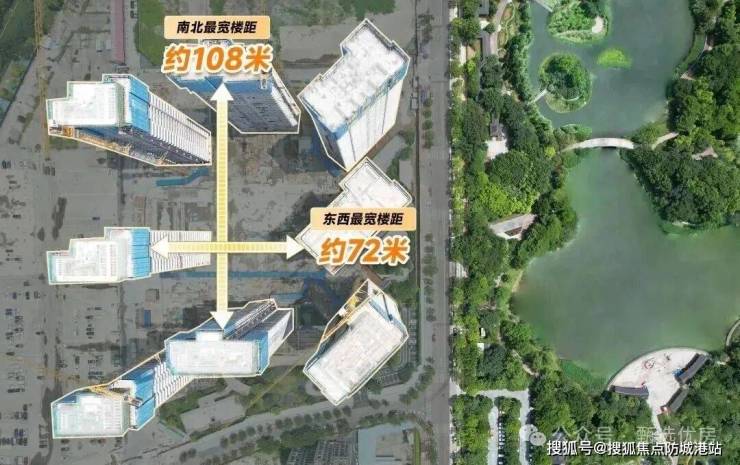 东建映月湖壹号总占地约3.6万㎡,总建面约16.5万㎡,整体规划以“高端、纯粹、静谧”为核心,打造纯大户低密湖景社区,彰显塔尖圈层质感。项目容积率3.0,规划8栋住宅,仅461户,纯大户布局,无底商规划,彻底规避商业噪音与人员嘈杂,确保社区静谧性与私密性,居住氛围纯粹,圈层属性突出。楼栋采用大围合布局,全单边、全板式、全南向设计,这种布局可最大化利用映月湖景观资源,确保每一栋楼、每一户都能拥有良好的采光与景观视野。项目楼间距尺度优越,南北楼间距最宽约108米,东西间距最大达到约72米,远超同区域高端楼盘标准,有效避免楼栋遮挡,确保每一户都能获得充足的日照与良好的通风效果,同时保障业主居住私密性。社区绿化率约25%,结合映月湖生态景观,打造多层次园林景观,搭配休闲步道、景观小品等设施,实现建筑与自然的完美融合。此外,社区实行人车分流设计,两层地下车库,车位配比1:2,充足车位保障业主停车便捷,同时避免车辆进入社区内部,保障社区通行安全,营造静谧、安全的居住氛围。