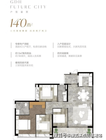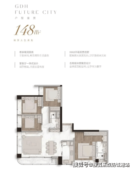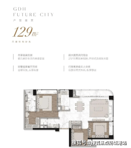 建面约129-148㎡都芯轻奢私邸:同样采用了豪宅标准进行设计,确保了极高的舒适度,所有户型均可望到白云山的景观。