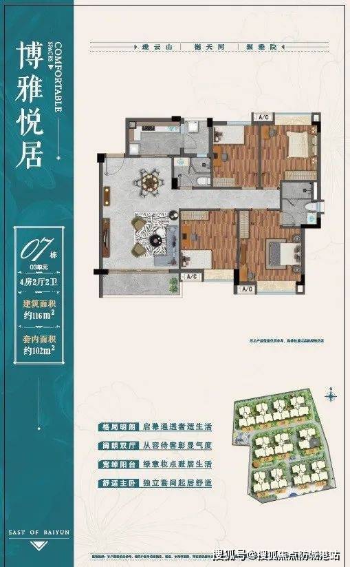 以1.87容积率,32%绿化率打造城央低密人居,荟萃岭南风情,匠造四季园林,一季一风光,风景无处不在;精筑建筑面积约64-119㎡稀贵五层低密小洋楼,双阳台设计,打造无差别对流,每天共享阳光与清风的轻抚,谱写诗意理想家。