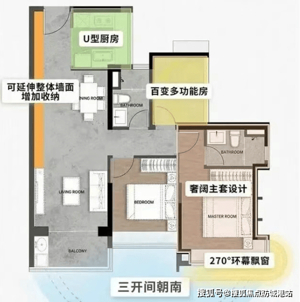 123㎡四房:约26㎡南北对流主卧套房+金融岛唯一阳光玄关+4.5开间朝南,可灵活改造为双套间;