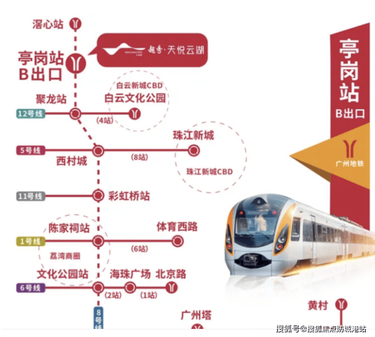 项目地处白云区石沙大道滘心地铁站附近,距离8号线亭岗站仅百米左右,地铁交通极为便捷。该线路贯穿广州多个人流密集的商业和文化核心区,直通荔湾、越秀、天河等主城区重要商圈,半小时内可达主要休闲娱乐地点,极大提升了出行效率。此外,项目临近白云湖风景区,兼具城市文化旅游资源与生态湖居优势。未来随着白云湖数字科技城的不断发展,周边区域将进一步完善基础设施,形成多轨交汇、多路联通的立体交通网络,极大增强了项目的区域价值和生活便利性。