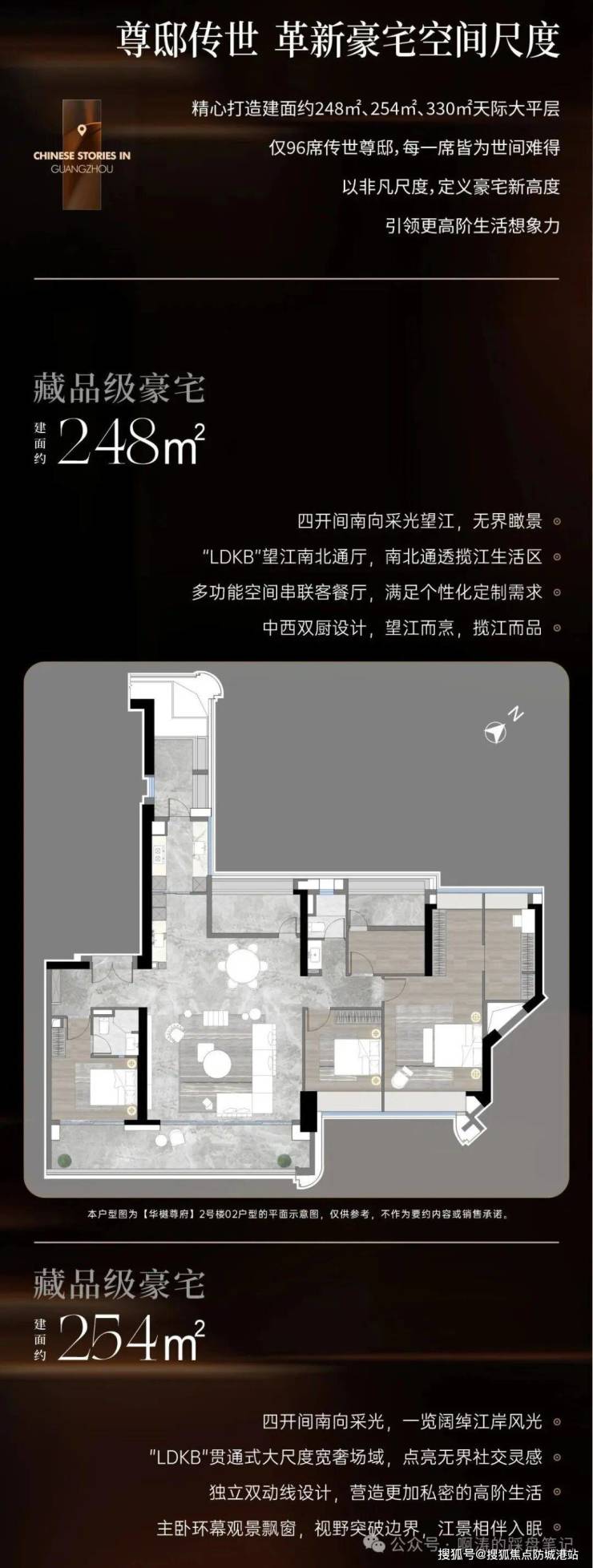 在售产品: 建面约248㎡、254㎡、330㎡天幕大平层