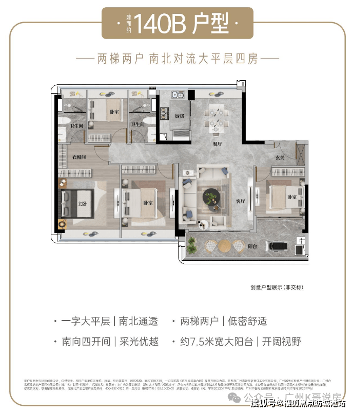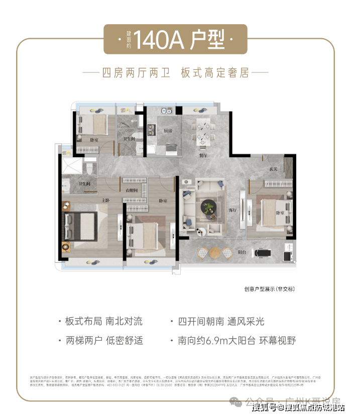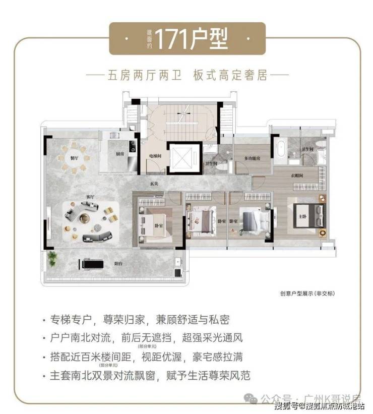 产品线聚焦建面约140-270㎡的纯粹改善面积段,全系采用一梯一户或一梯两户的板楼设计。约171㎡以上户型更配置专梯专户。核心亮点在于“全南向”与“大面宽”,结合百米楼间距,确保了极佳的采光、通风、视野与私密性,部分户型拥有近10米宽景阳台。