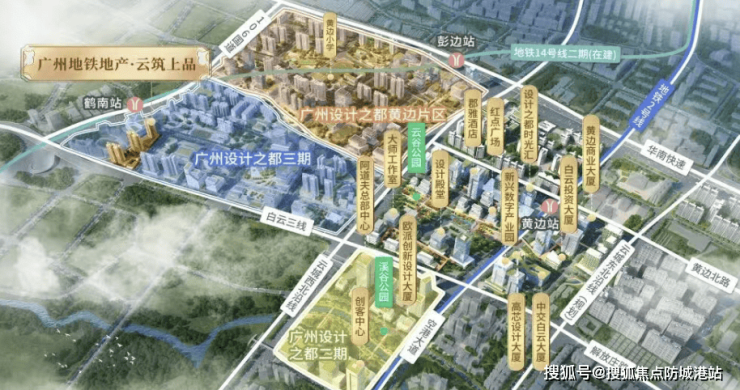 广州地铁·云筑上品坐落于白云设计之都板块,这一板块依托十四五战略规划,宛如一颗璀璨的新星,在广州的发展版图中熠熠生辉。其体量 4 倍于珠江新城,占据白云新城核心位置,与广州时尚之都携手打造国际交往中心、城市枢纽门户以及总部经济聚集区。