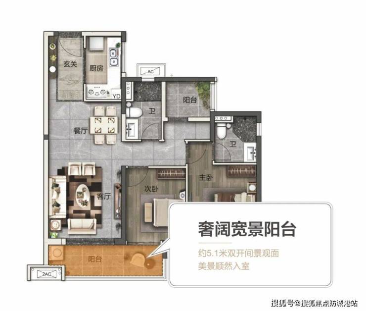 当家与自然风景融为一体,生活的视野便足够开阔,尽显释然开怀的人生态度。美的云悦江山,建面约91㎡户型,凭借5.1m阔绰阳台,将生态风光纳入到生活视界里,营造一处“风景里的家”。