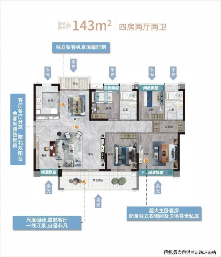 项目目前推售的户型包括建面约98-143平三至四房,纯粹的改善面积段,配上奢阔的空间尺度,一眼就能看到其用心。