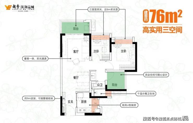 多样化户型选择:越秀滨海花城推出了多种面积段的户型供购房者选择,从约76平方米到约100平方米不等,涵盖了三至四房的设计方案。所有户型均注重实用性与舒适性,尤其是89-100平方米的户型,更是实现了270°环幕视野和X空间设计,极大地提高了空间利用率和居住体验。