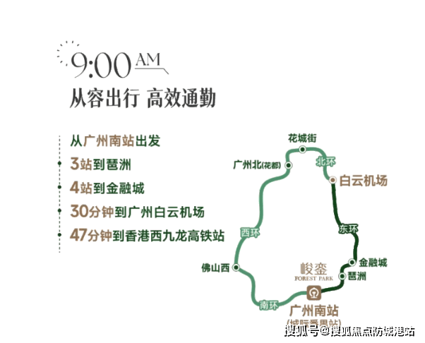 立体交通网络是广州南站ICC的一大亮点,项目紧邻广州南站,步行仅需约5分钟。这里不仅是世界级交通枢纽,更是粤港澳大湾区的门户,拥有4条高铁、4条城际轨道、4条地铁、5条快速路及2条有轨电车。这种便捷的交通条件使得居民可以轻松到达广州三大CBD,并且通过广佛东环城际铁路,无需中转即可抵达琶洲、金融城等地。