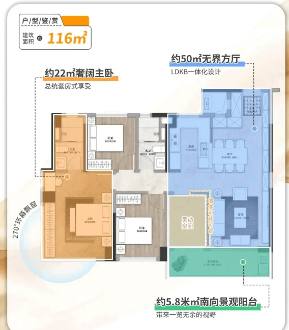 户型,是改善盘的灵魂。保利天汇·汇悦组团采用新规2梯3户设计,每部电梯仅服务46户,候梯时间大幅缩短,私密性与效率兼得。更惊艳的是其接近100%的使用率——这在当前普遍“公摊膨胀”的市场中堪称降维打击。主力116㎡三房+1多功能房,LDK一体化布局,5.6米大阳台贯通客厅与次卧,采光通风拉满;主卧270°转角飘窗,视野开阔,小户型做出大宅感。139㎡四房更是改善一步到位之选:南向面宽近16米,南北双阳台对流,最小次卧也有9㎡,轻松放下1.5米床+书桌。全屋收纳系统贯穿玄关、厨房、卧室,细节处见功力。实测对比同区域竞品,汇悦组团在同等面积下多出5-8㎡实用空间,相当于省下10万+购房成本。这种“空间魔术师”级的设计,正是其热销的核心密码。