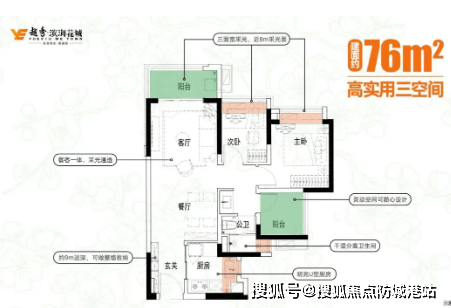 约76㎡的三空间2厅1卫:紧凑实用,适合年轻家庭。