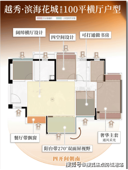 约100㎡的横厅或竖厅四空间格局:通风和采光接近板楼,功能性和通透性俱佳。