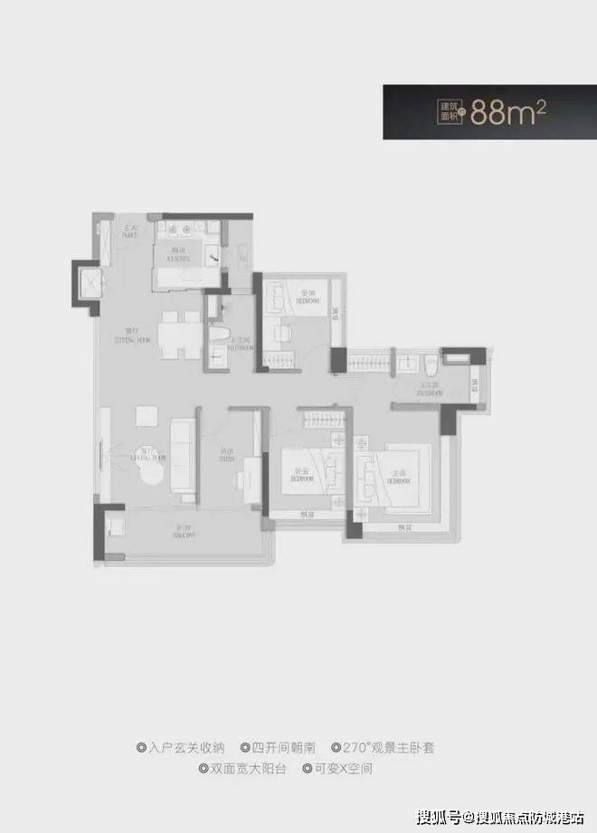 88平做到四房两卫双开间阳台,实用率去到130%,使用面积可以去到110平!!