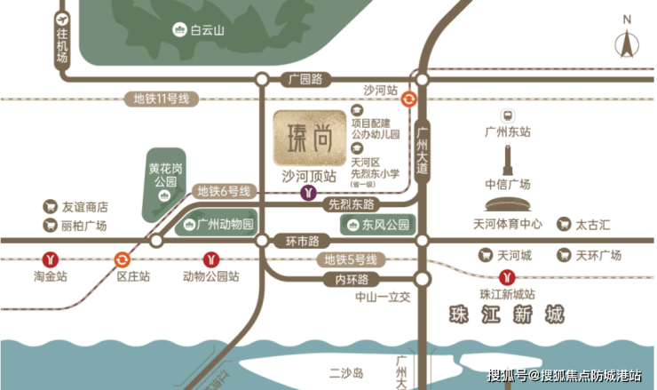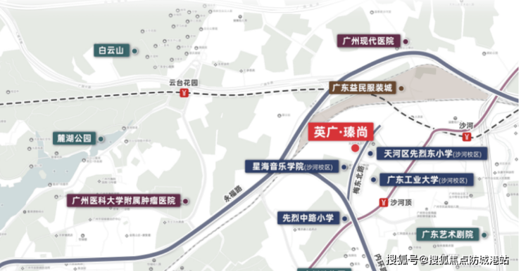 项目位于天河区白云山南麓片区,属于“云河芯、粤文坊”核心位置,是“粤文坊”城市更新计划的重点区域。该地段兼具自然景观与城市资源优势,距离天河北核心商圈仅约1.1公里,既享有天河区繁华商务区的便利,又能获得沙河板块相对低密、生态优越的生活环境。周边聚集市政机关、高校和文化机构,包括中共广州市委党校、广州工业大学(沙河校区)、星海音乐学院等,为社区营造浓厚文化氛围。天河区作为广州主城核芯,区位价值高,交通、教育、医疗及商业资源丰富,使英广瑧尚在核心地段具备独特的生活和投资价值。