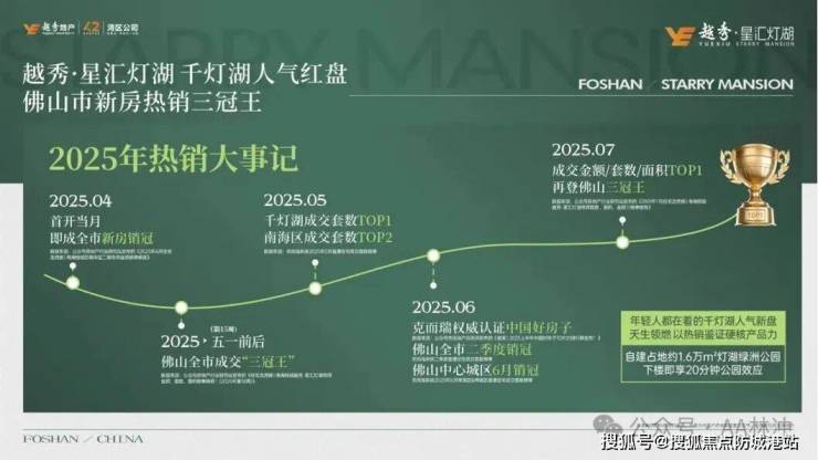 越秀星汇灯湖自 2025 年 4 月入市以来,持续领跑佛山楼市,5 月单月到访超 3000 人,首推房源 1 小时售罄,三推三罄,连续斩获 4-11 月佛山南海区成交套数 TOP1,全盘认购突破 500 套,荣获 2025 上半年 “中国好房子” 殊荣,是佛山楼市现象级红盘。