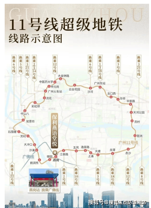 保利燕语堂悦的交通便利性堪称一流。它紧邻正在建设中的11号线和广佛线交汇的燕岗地铁站,步行即可到达。此外,周边还有发达的道路网络,如工业大道主干道,方便居民快速抵达广州各个核心区域。家门口即有纸厂公交站,500米范围内有多达28条公交线路可供选择,极大地方便了居民的日常出行。无论是上班通勤还是休闲娱乐,保利燕语堂悦都能提供便捷高效的交通解决方案。
