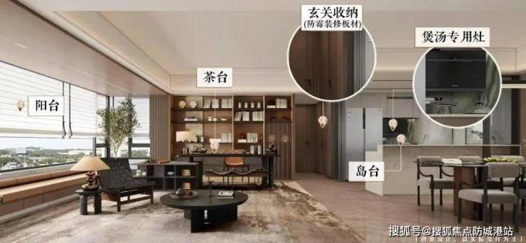 连片收纳系统:冰箱凹位实现连片收纳,还原互动大方厅空间