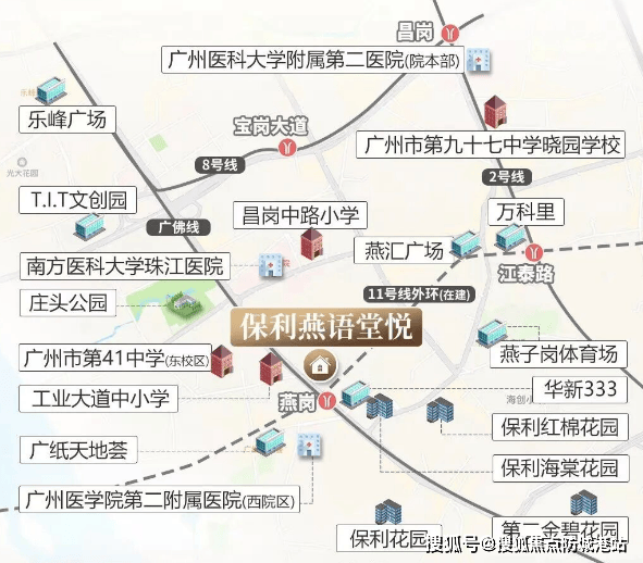 保利燕语堂悦位于广州市海珠区工业大道中的燕岗地铁站旁,是保利集团在广州打造的首座“悦”字系焕新大作。该项目不仅拥有优越的地理位置和便捷的交通网络,还配套有丰富的教育资源和生活设施,旨在为居民提供一个高品质的生活环境。