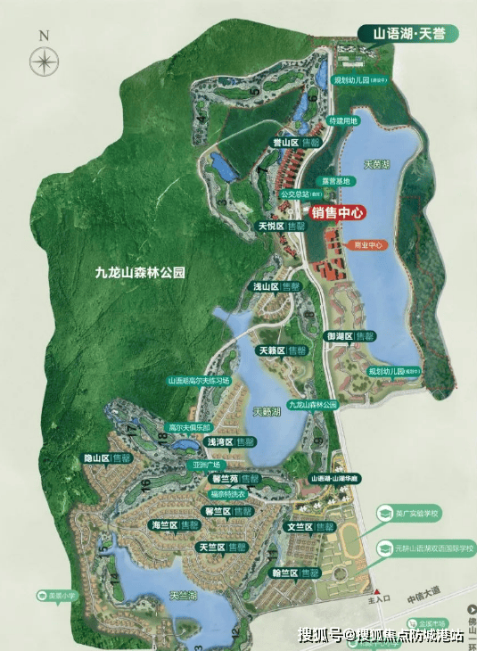 山语湖·天誉所在的山语湖项目配套高端且丰富。2000亩九龙山森林公园,绿树成荫,空气清新,是居民休闲健身、亲近自然的天然氧吧;1200亩三大天然湖区(天竺湖、天籁湖、天茵湖),湖水清澈,波光粼粼,为社区增添了灵动之美;1600亩18洞私家精品高尔夫球场,为高尔夫爱好者提供了一展身手的舞台;沿湖步道、湖畔大草坪、亚洲广场等休闲空间,满足居民不同的休闲需求;近2万㎡商业中心山湖天街,汇聚各类商业业态,让居民在家门口就能享受便捷的商业服务。