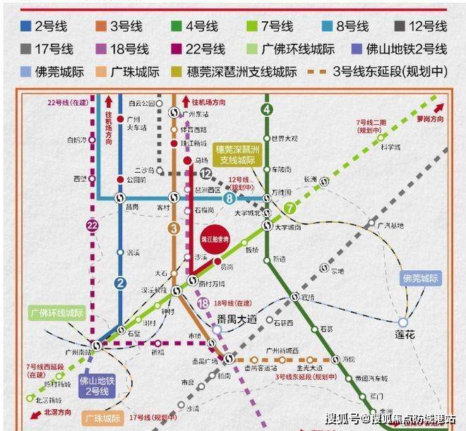 交通便捷程度令人瞩目。在售的 A2 组团靠近地铁 7 号线,步行约 550 米到员岗地铁站,1 站到南村万博站(7 号线+18 号线交汇站点),4 站到琶洲,5 站到珠江新城。500 米处就是南大干线,驾车约 5 分钟到万博 CBD,约 10 分钟到长隆旅游度假区,约 20 分钟到广州南站。通过南沙港 / 新光 / 华快等快速路,约 10 分钟到大学城,约 15 分钟到琶洲,约 20 分钟到珠江新城,约 25 分钟到南沙自贸区。自驾出行更是便捷,出小区上南大干线,30 分钟内可到达多个重要区域,无论是通勤还是出行游玩都十分方便。