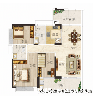 超大入户花园,是这个户型的一大亮点,入户花园空间宽敞,既能作为玄关收纳,又能莳花弄草,养神养眼,打造属于自己的小花园。平时,业主可以在入户花园里种植一些绿植、花卉,增添生活气息,让归家的第一瞬间就能感受到自然的美好;也可以在这里摆放休闲座椅,喝茶、聊天,享受独处的时光。