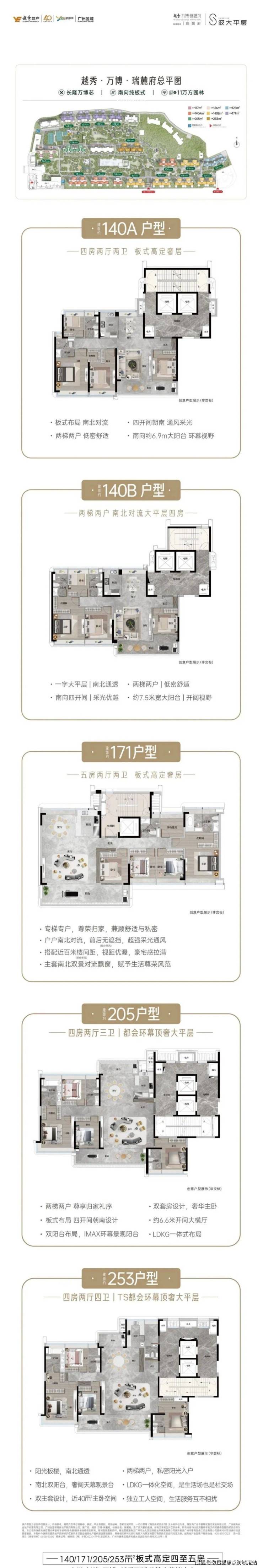 目前,瑞麓府正在销售的楼栋包括2栋、7栋、10栋、11栋、13栋、16栋等,户型涵盖140平方米至253平方米不等,满足不同家庭结构的需求。例如,11栋提供的253平方米四房两厅两卫户型,以其宽敞的空间和精致的设计受到众多购房者的青睐;而17栋的171平方米奢适五房,则特别适合追求高品质生活的家庭,其270°巨幕阔景阳台、近40平方米的餐客厅以及总统级主卧套房等特色,无不展现出豪宅级别的享受。每个户型均采用全板式设计,南北对流,保证了室内充足的采光和通风,营造出舒适宜人的居住环境。