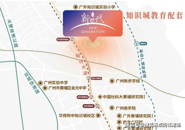 科城新世代距离地铁14号支线知识城站仅800米,可视为地铁盘。此外,项目北侧靠近新白广城轨佛塱站,直达东莞、深圳,并可在新塘换乘进入广州东站。便捷的交通条件使得居民能够轻松往返于工作地和居住地之间。