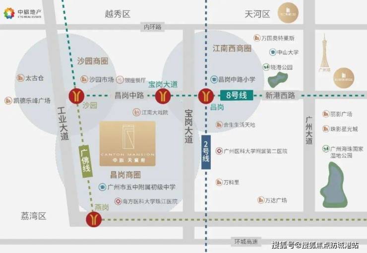 2、中旅·天宸府地理位置优越,坐落于广州市传统中心区海珠区昌岗中路100号,西邻工业大道北路,北接昌岗中路。这样的区位使其融入了城市繁华的脉络之中,既享有老城区成熟的生活氛围,又能借助周边道路网络,与城市其他区域紧密相连,为居民提供便捷的生活体验和广阔的发展空间,真正实现了城市资源的高效整合与利用。