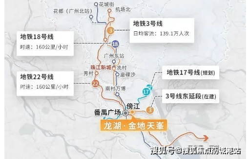 龙湖金地天峯坐落于番禺广场区府板块,作为广州番禺区重点打造的 TOD 综合体项目,地理位置优越,发展潜力突出。项目以地铁 3 号线东延段傍江站为核心,集地铁、商业、教育等多元优质资源于一体,构建 “一站式” 生活圈。从区域规划来看,番禺广场板块作为番禺区行政、商业、交通枢纽核心,未来将持续完善交通网络与配套设施,进一步提升板块价值。随着 18 号线、22 号线等线路的互联互通,项目将深度融入广州核心城区发展脉络,成为连接珠江新城、万博、琶洲等核心区域的重要节点,为居民带来更便捷的生活与更广阔的发展空间。