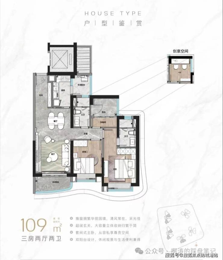 交楼标准:高品质精装交付,引入Well健康建筑标准,配备3M净水系统、全屋新风系统等高端人居配置
