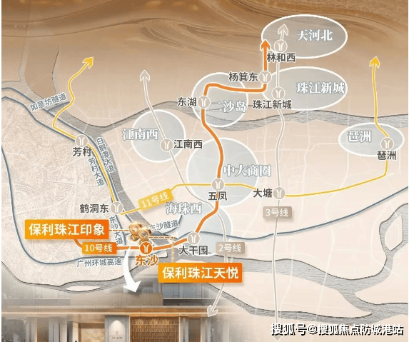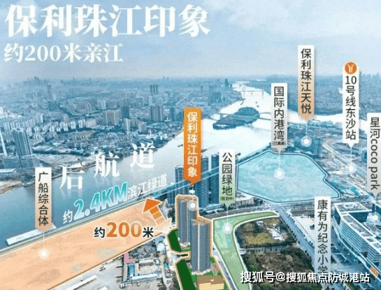 项目坐落于广州市千亿打造的后航道沿江经济带,享受广州唯一世界级内港湾及 8 万方滨江水港。邻近白鹅潭大道、东沙石岗隧道,5 分钟可连接海珠西,快速接驳环城高速、东新高速。东沙隧道(在建中)、丫髻沙大桥直达海珠。家门口 10 号线东沙站距离仅 700 米,4 站可达中大,6 站到滨江东,还能零换乘直达珠江新城、11 号线和 22 号线。规划中的水上巴士及港湾码头(计划 3 年内完工),将进一步丰富滨水出行体验。不过,目前自驾出行道路存在断头路情况,虽已在修建,但仍对当下出行有所影响。