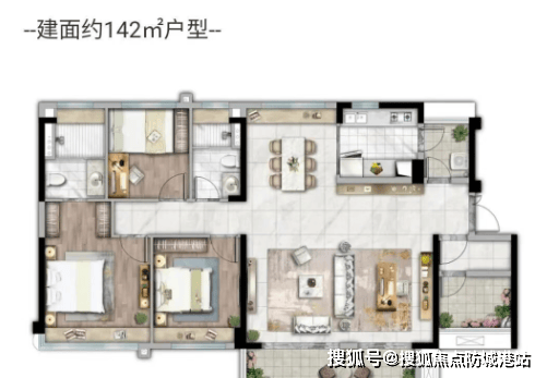 143㎡大四房:阔绰横厅,6米以上景观阳台,双卫设计,三代同堂理想之选。