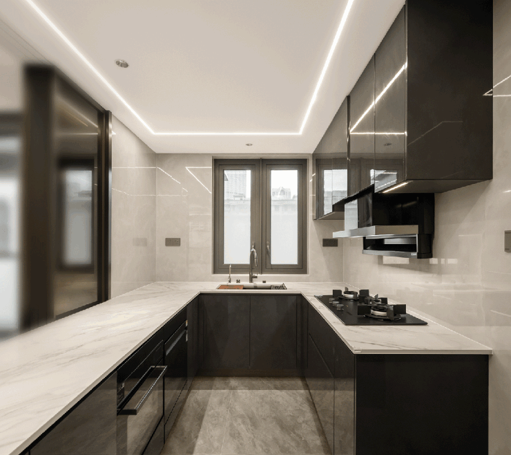 而在室内装修方面,项目摒弃了传统的“白墙落地”,采用了系统护墙板搭配木饰面或皮饰面进行交付,提升了整体的视觉效果和使用体验。同时,方太三眼灶、智能感应升降油烟机等高端配置的应用,也充分考虑到了广东家庭的生活习惯,让烹饪变得更加轻松愉快。