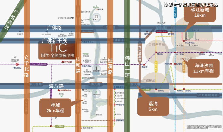 三横:广佛路、广佛新干线、海八路,往东15分钟到广州荔湾、30分钟到海珠、越秀中心;