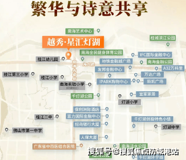 项目坐享千灯湖成熟城市界面。1公里范围内涵盖万科里、中建广场、爱车小镇等社区商业;2公里辐射圈内汇聚保利水城、南海万达广场、丽致汇、招商iPark、京华广场等大型综合体,满足购物、餐饮、娱乐多元需求。医疗资源同样优越,广东省中西医结合医院、佛山市中医院、妇幼保健院等三甲机构均在便捷可达范围内。此外,项目自建约2万㎡社区公园,并与外部14.7万㎡市政公园无缝衔接,共同融入超40万㎡的千灯湖城市公园系统,实现“推窗见绿、出门入园”的生态人居理想。