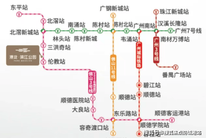 地铁:家门口地铁3号线伦教站已开通,1站北滘,3站大良,9站广州南,半小时畅行广佛。